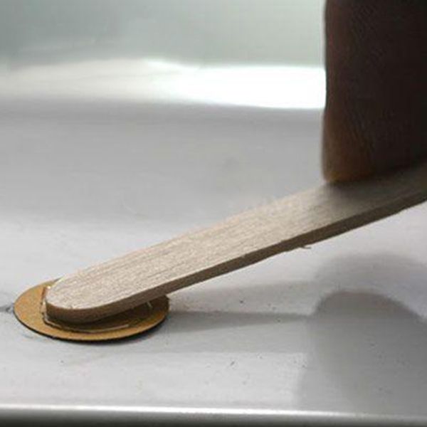 Vì xe chỉ bị tróc sơn một vùng rất nhỏ nên bạn phải chà nhám cẩn thận ở mép ngoài của chỗ tróc để tránh làm xước phần còn lại của xe. Hãy cắt giấy nhám thành các vòng tròn nhỏ và dán vào que.