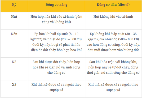 Chính vì nguyên liệu đầu vào khác nhau dẫn đến tính chất và quy trình hoạt động của hai loại động cơ này cũng khác nhau.
