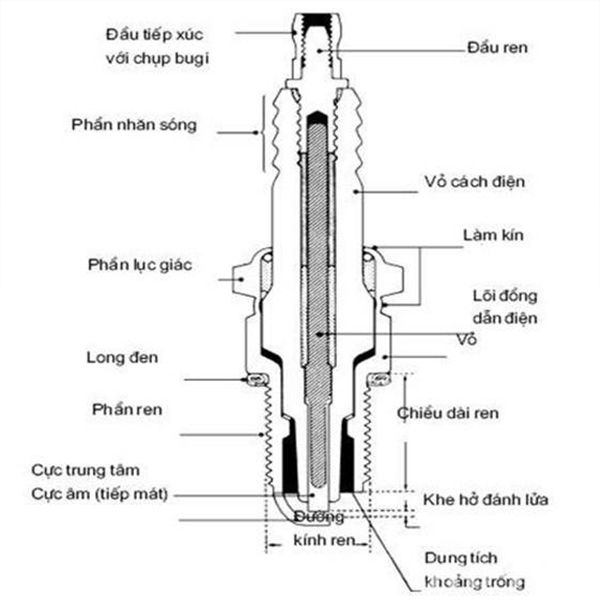 Bugi ô tô được cấu tạo bao gồm các thành phần: